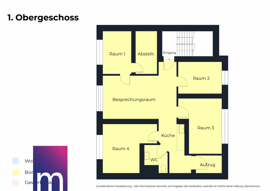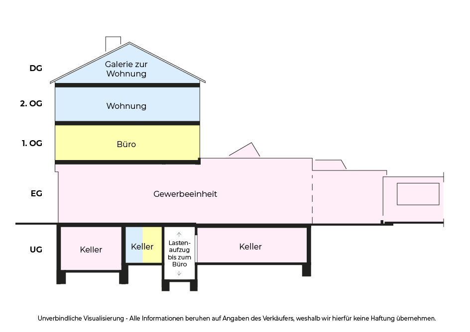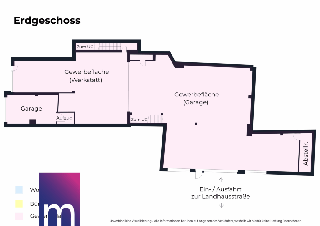 Dieses gepflegte Mehrfamilienhaus mit Werkstatt, Halle und Lager überzeugt mit einer großzügigen und vielseitig nutzbaren Gewerbefläche im Erdgeschoss, einer attraktiven Wohnung / Büroeinheit im 1. Obergeschoss sowie einer stilvollen 3 – 4 Zimmer-Maisonette-Wohnung im 2. Ober- und Dachgeschoss. Das Haus befindet sich in einem gepflegten Zustand und bietet sowohl Kapitalanlegern als auch Eigennutzern, Handwerkern und Mechanikern ein äußerst interessantes und flexibles Nutzungskonzept. Bitte beachten Sie, dass die angegebene Fläche von 815 m² sich auf die gesamte Nutzfläche des Hauses bezieht. Die Aufteilung der Flächen siehe in Folge: Aufteilung auf einen Blick: Gewerbeeinheit: • Erdgeschoss • Werkstatt (beheizt): Ca. 165 m² • Garage / Halle (unbeheizt): Ca. 275 m² • Vermietet • 1.350€ Kaltmieteinnahmen / Monat Wohnung / Büro: • 1. Obergeschoss • Ca. 85 m² • Vermietet • 775€ Kaltmieteinnahmen / Monat Wohnung: • 2. Obergeschoss + Dachgeschoss • Ca. 125 m² • Frei werdend Keller: • Untergeschoss • Ca. 165 m² • WC und Duschbad • Flexibel nutzbar Beschreibung: Im Haus befindet sich ein Lastenaufzug, welcher das Untergeschoss mit dem Erdgeschoss und dem Obergeschoss verbindet. Erdgeschoss – Gewerbeeinheit Im Erdgeschoss stehen eine großzügige, beheizte Werkstatt sowie eine weitläufige Halle / Garage zur Verfügung. Die Gewerbefläche bietet dank offener Raumgestaltung und zwei großzügigen Einfahrten von unterschiedlichen Straßen, sehr vielfältige Nutzungsmöglichkeiten. Über eine interne Verbindung zum Untergeschoss stehen zusätzliche Lagerflächen zur Verfügung, darunter ein WC, ein Duschbad sowie ein großer Abstellraum. So ergibt sich ein über zwei Etagen flexibel nutzbares Raumangebot. 1. Obergeschoss – Büro / Wohnung Im ersten Obergeschoss befindet sich eine helle Büroeinheit, die in Wohnraum umgenutzt werden kann. Vier Räume, ein Abstellraum sowie eine kleine Küchenzeile, schaffen eine angenehme Atmosphäre. Die Bürofläche / Wohnung ist außerdem durch einen Fahrstuhl vom Erdgeschoss aus zu erreichen. 2. Obergeschoss & Dachgeschoss – stilvolle 3 – 4 Zimmer-Maisonette-Wohnung (frei werdend) Die moderne Maisonette-Wohnung erstreckt sich über zwei Etagen und begeistert mit hellen, freundlichen Räumen in sehr gutem Zustand. Der großzügige Eingangsbereich öffnet sich in einen lichtdurchfluteten Wohn- und Essbereich. Von hier aus gelangen Sie in die Küche mit praktischer Durchreiche, ins Esszimmer, ein geräumiges Tageslichtbad sowie ein separates WC. Über eine elegante Treppe erreichen Sie die Galerie-Ebene mit einem weiteren Badezimmer, einem vielseitig nutzbaren Raum (z. B. Kinderzimmer, Büro oder Hauswirtschaftsraum) sowie einer, kaum einsehbaren Dachterrasse mit Blick über die Dächer von Stuttgart-Ost – ein echtes Highlight für entspannte Stunden im Freien. Untergeschoss (165 m²) – Großzügige Lager- / Kellerräume Das Untergeschoss bietet Ihnen ein praktisches und vielseitiges Raumangebot durch 5 weitere Lager-/ Kellerräume.