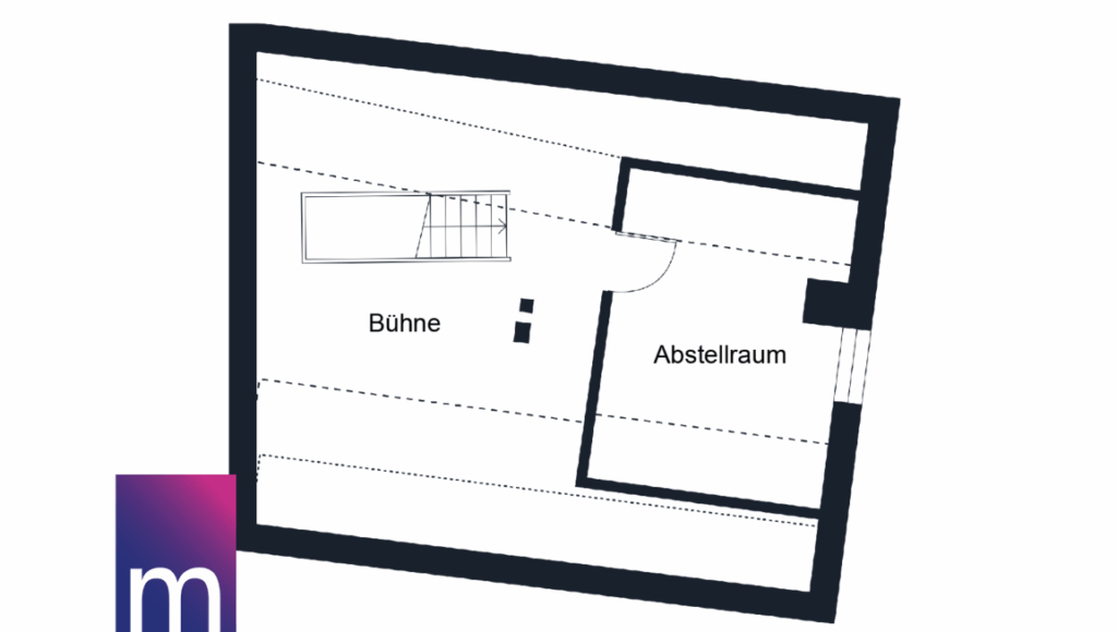 **Dachgeschoss:** Vermietet, ca. 53 m² (Bühne nicht inbegriffen)