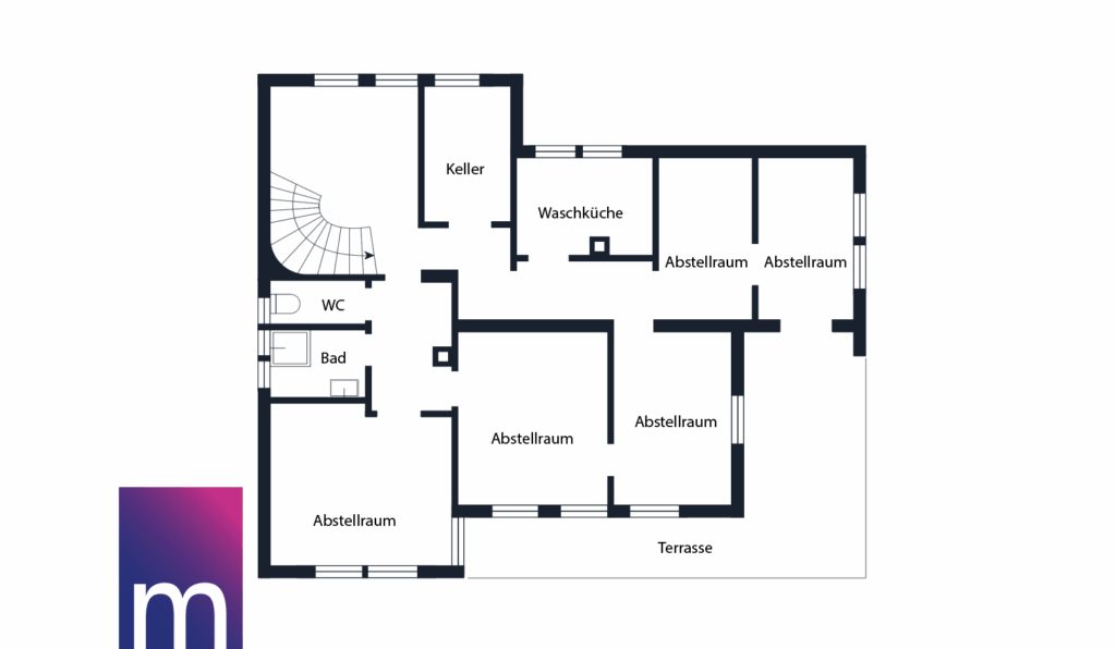 Im Untergeschoss befinden sich fünf praktische Abstell- und Kellerräume sowie ein zusätzliches Badezimmer mit WC, was den Bereich vielseitig nutzbar macht – ob als Stauraum, Hobbybereich oder Homeoffice.