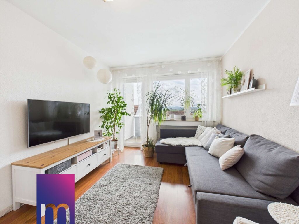 Das lichtdurchflutete Wohnzimmer mit Zugang zum großen Südbalkon lädt zum Entspannen und Wohlfühlen ein. Das Schlafzimmer bietet ausreichend Platz für Bett und Schrank.