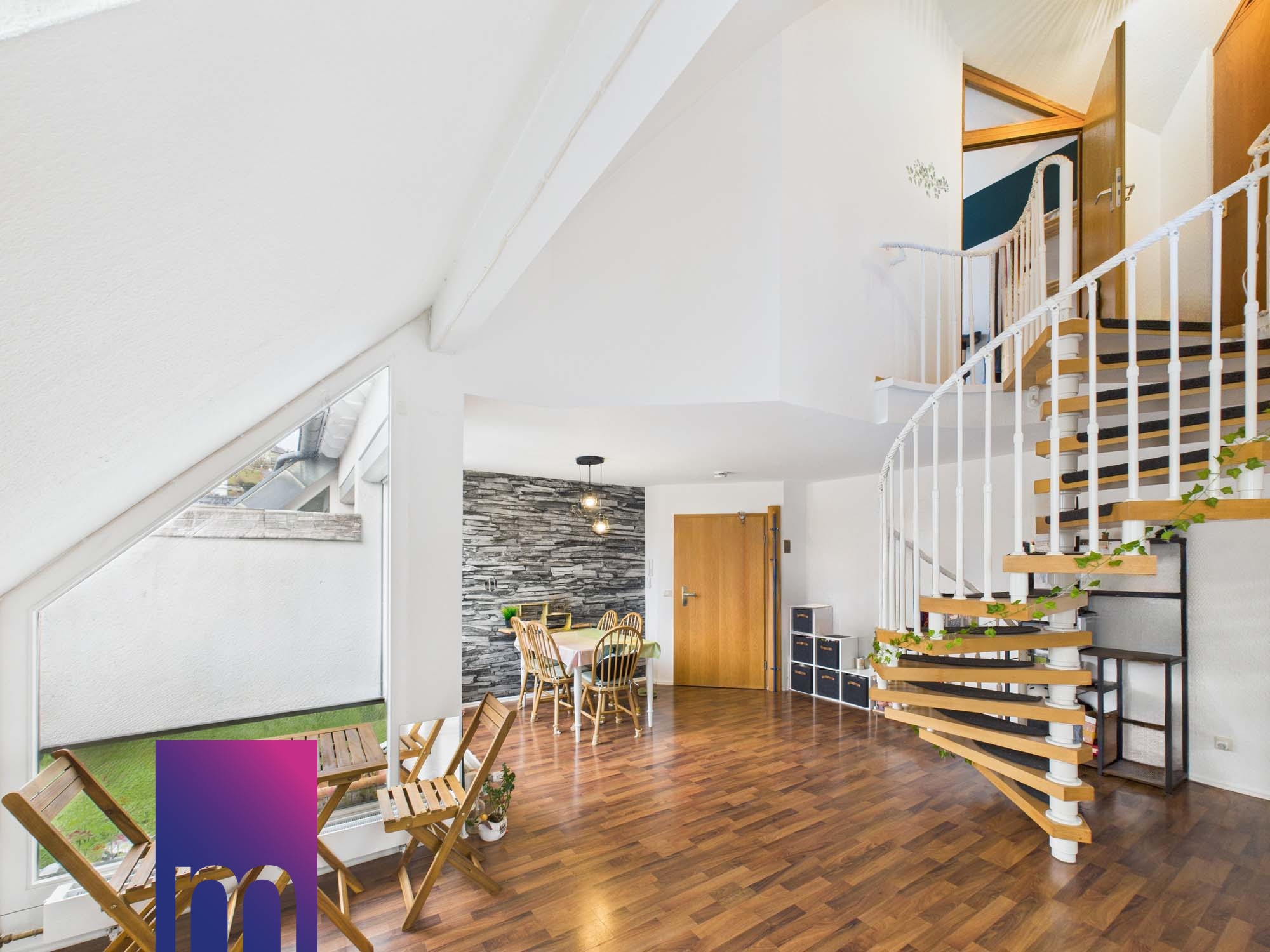 Insgesamt präsentiert sich diese moderne Maisonettewohnung als stilvolles Zuhause mit viel Licht, Raum und Komfort.