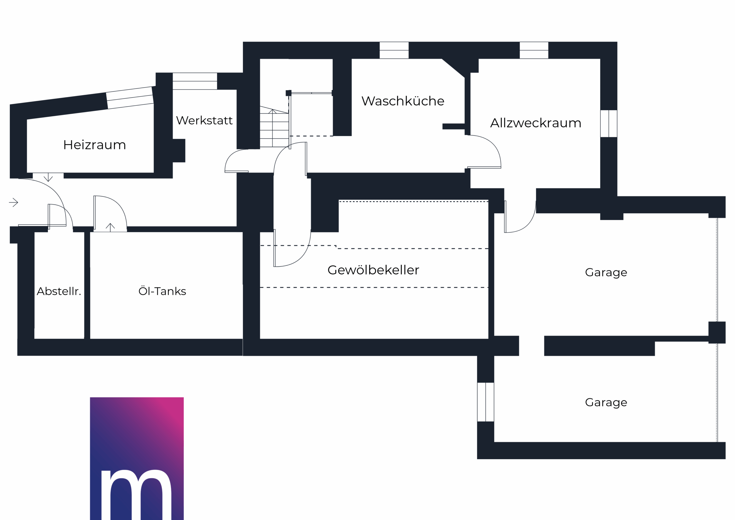Das große Untergeschoss ist ein wahres Raumwunder: Neben einem eindrucksvollen Gewölbekeller gibt es zwei Garagen, eine Waschküche, einen Abstellraum, einen Allzweckraum sowie einen weiteren Raum, der derzeit als Werkstatt genutzt wird. Hier ist reichlich Platz für Hobbys, Lagerung oder eine kreative Nutzung ganz nach Ihren Bedürfnissen.